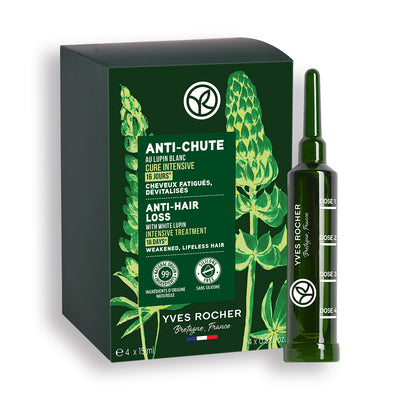 Која е тајната на белиот лупин? Екстрактот од бел лупин е избран поради неговата висока содржина на пептиди кои се од витално значење за рамнотежата на косата. Ја стимулира микроциркулацијата на скалпот и ја намалува активноста на 5-алфа-редуктаза, ензимот одговорен за опаѓање на косата.