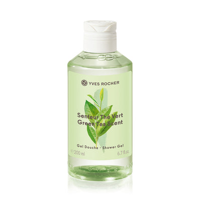 Гел за туширање со свеж мирис на зелен чај и нежна формула збогатена со органска вода од различок.